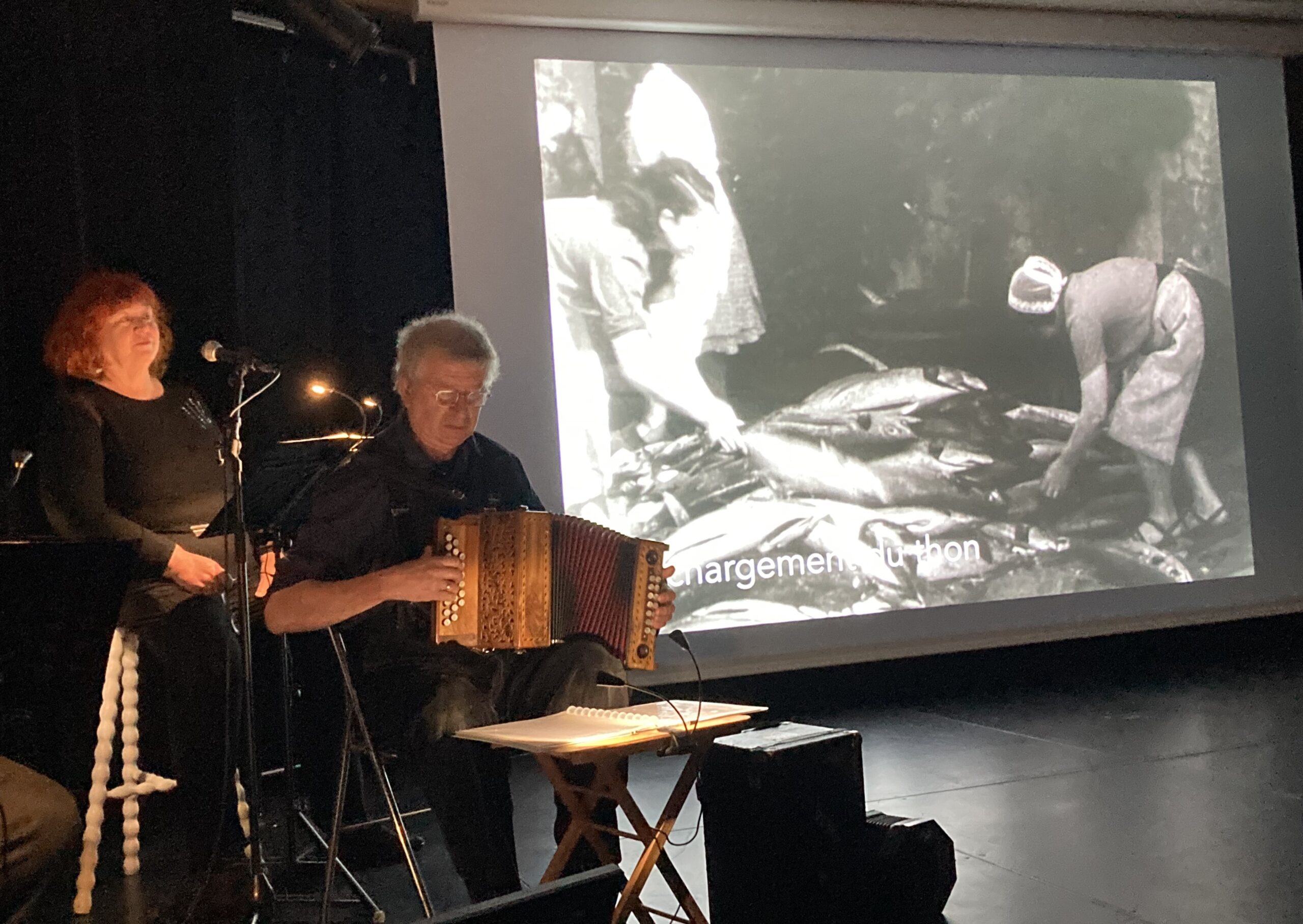 Après avoir créé en 2025, dans le cadre du Festival Pêcheurs du monde de Lorient, le ciné-concert sur le film Conserveries de poissons : de l’atelier à l’usine 1930/1960 (film d’Alain Pichon), 2026 voit une création sur un concept original : un concert thématique, avec images et introductions « racontées » des chansons. Chansons en pêches, dont la première aura lieu le 24 avril à Clohars-Carnoët, près de Concarneau, réuni des chansons créées par des marins-pêcheurs chansonniers qui racontent leurs pêches. Les chansons reflètent trois siècles de pêches, du 18e au 20e siècle, et parlent de pêches à la morue, au hareng, à la baleine, à la sardine, au thon, au congre, à la langouste…
